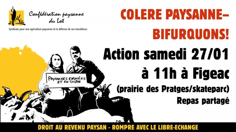 La Confédération paysanne du Lot souhaite que la colère dans nos campagnes soit entendue et suivie d'effets sur la question du revenu agricole pour permettre