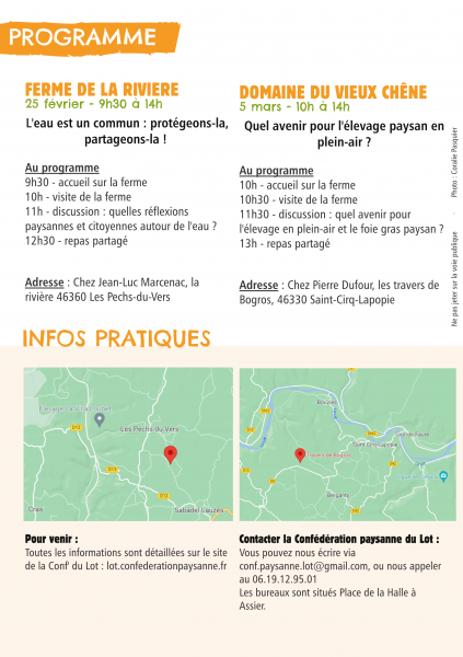Dans le Lot, nous vous proposons 2 visites de fermes, les 25 février et 5 mars :